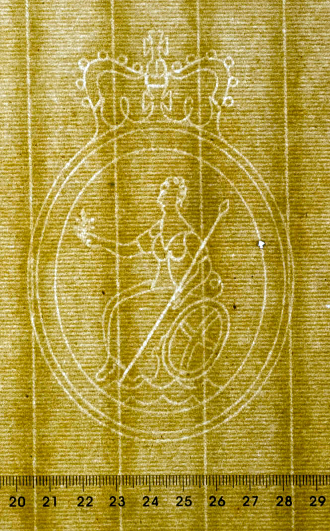 Please note that the pictures of the watermarks and structure of the paper do not represent the true colour of the paper as they were made with a lightsource behind the paper and manipulated to get a clear picture.