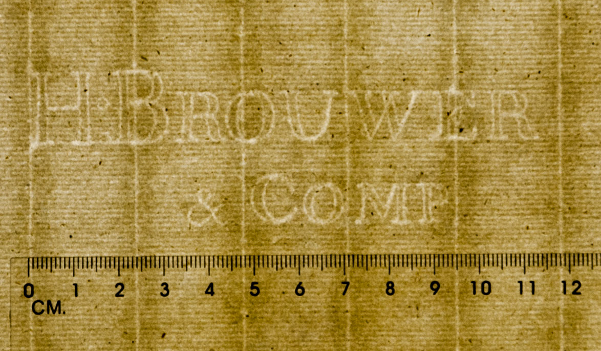 Set of 2 blank sheet of laid paper with watermark H Brouwer & Comp on one sheet and Amsterdam with H Brouwer & Comp underneath.