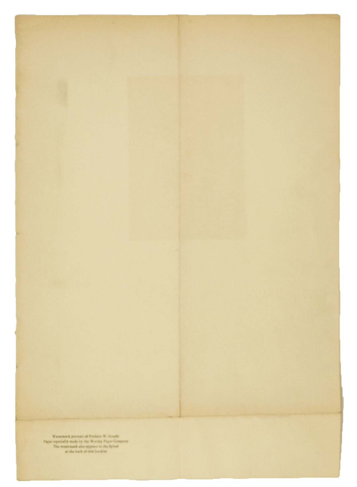 Size: ca. 25 x 17,5 cm. Printed:on back: "Watermark portrait of Frederic W. Goudy. Paper especially made by the Worthy Paper Company. The watermark also appears in the flyleaf at the back of this booklet". Condition: folded as issued
