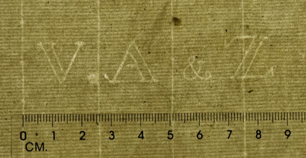 Please note that the pictures of the watermarks and structure of the paper do not represent the true colour of the paper as they were made with a lightsource behind the paper and manipulated to get a clear picture.